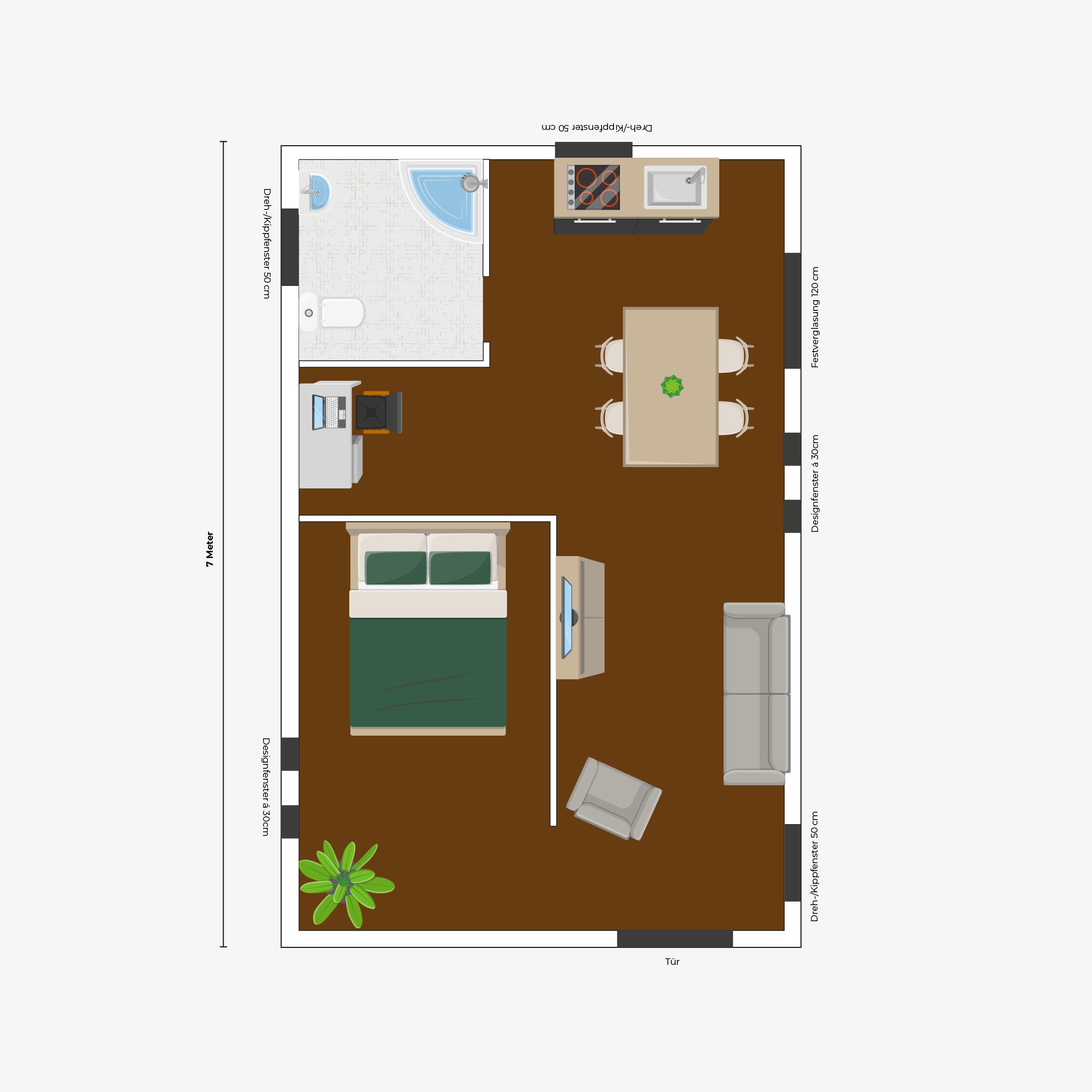 Every idea needs its own framework – that's why the XXL Urban One doesn't come in a fixed shape, but is completely customizable. Whether as a clean rectangle, a generous T-shape, an open U-shape, or an elegant L-shape: you determine how your space looks. This creates a floor plan that's not only practical but perfectly fits your lifestyle.
