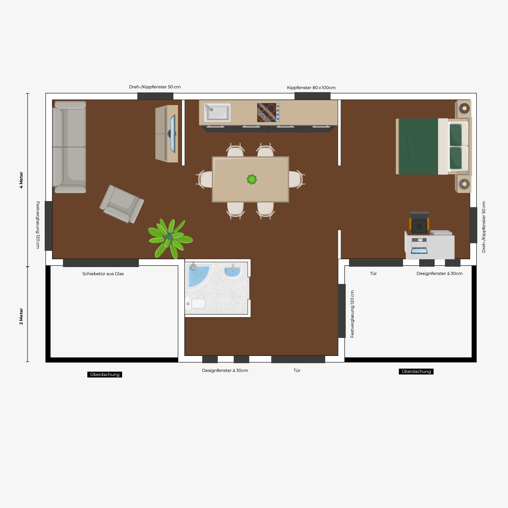 We always recommend creating a foundation according to our specifications. You can easily download the foundation plan for your exact configuration free of charge using the configurator. If you book our assembly service, we require the foundation to be in place so that we can guarantee the stability of your Urban One.