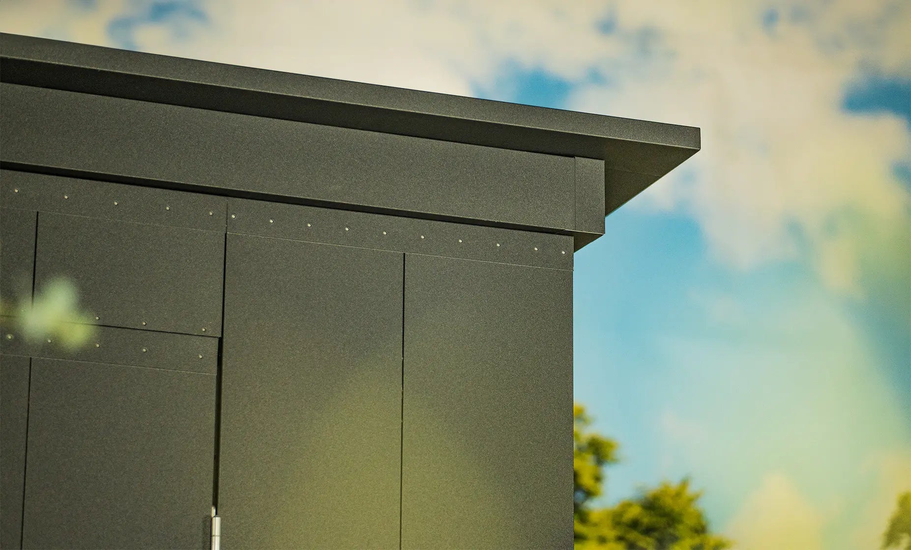 Il COSMIC Plus è una casetta per attrezzi entry-level, ma senza compromessi in termini di qualità, lavorazione e stabilità. È realizzata con singoli pannelli in acciaio piegati, dello spessore di 0,75 mm. Questo conferisce al COSMIC Plus una stabilità “Best in Class”, mantenendo al contempo un aspetto elegante grazie alle pareti esterne lisce e non ondulate. Grazie alla piegatura intelligente delle pareti interne, è possibile installare mensole, ganci o altri accessori interni in qualsiasi punto della parete con viti autofilettanti, in modo semplice e sicuro.